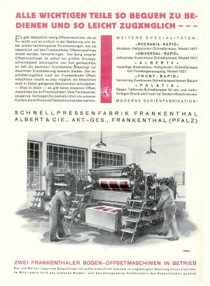Advertisement for an offset machine in Offset, Buch- und Werbekunst [Offset, book and advertising art], no. 1 (1927): n.p. UPM Library.
